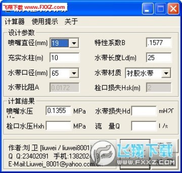 用于计算消火栓在不同充实水柱、喷嘴、龙带口径、材质、长度下的水头损失、水压、水量。