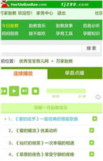 2、使用手机进行播放时尽量降低分贝,避免刺激胎儿