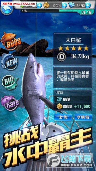 4、游戏中数以百计的鱼类供你垂钓,真实钓鱼体验中,你可以周游世界海滨圣地与知名钓场。