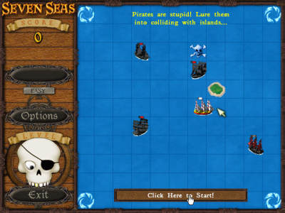 2D画面的海战战棋游戏,游戏背景为中世纪欧洲海盗横行的时代,使用了正方形的区域来代表海洋。帆船虽然比较小,但是可以看到船头的旗帜迎风飘摆,看得出画面的细节还是下了一番功夫。游戏分为易、中、难三个等级,分别适合不同水平的玩家进行游戏,在游戏中也会根据不同的水平出现更难缠的敌人。