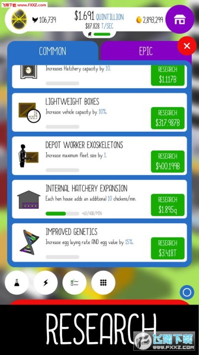鸡蛋公司 Egg, Inc. 扯了一个很宏大的背景,实际却是养鸡,游戏属于狂点类,略微带一点资源分配玩法 。