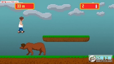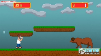 《穿越俄罗斯》是横版跑酷游戏,玩家操作一个狂饮伏特加的俄罗斯醉汉,不停的向前奔跑,途中收集各种伏特加,并且躲避拦路的各类动物(公牛,熊之类的),像素风格的世界一共有三个大关卡。