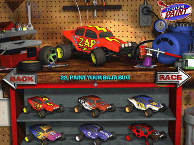 3D豪华遥控赛车比起前作又添加了8条赛道,赛车增加到40种,还可以自定义自己的赛车。包括改装引擎、换轮胎、喷漆、写字等等。为了考验你的赛车控制能力(我看是故意刁难),游戏中还加入了许多路面障碍和非正常灾难,使游戏过程充满不可知因素。