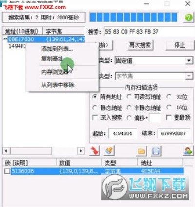 输入需要使用辅助功能的基址搜索数据