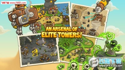 《王国保卫战:前线 Kingdom Rush Frontiers》是一款策略塔防游戏,玩家需要在游戏中,通过在地图上建造和升级炮塔或其他防御建筑物,来阻止敌人一波一波的进攻。而游戏丰富的主题场景,多种多样的小兵设计也是游戏的另一大亮点。续作在保留前作饱受好评的传统操作机制上,再次扩充了大量的全新内容,8种全新防御塔、9名全新英雄、包括巨蝎和暴怒猩猩在内的40种全新敌人,当然关卡的规模毫无疑问也将更上一层楼。王国保卫战:前线在继承前作优点的基础上,增加了更多的塔楼、更多的敌人、更多的英雄和更多的关卡。新增加的英雄和塔楼可以让玩家开发出全新的战术,新出现的敌人和关卡会带来更为多变的玩法。