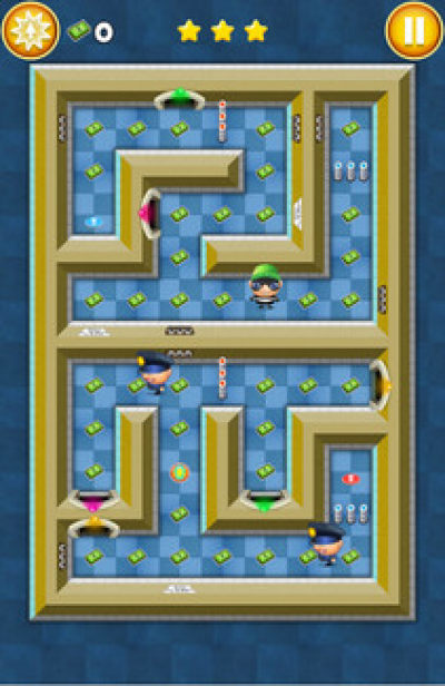 《挣大钱官方正式最新手游》游戏中选择界面中间的黄颜色播放器按钮进入,点击开启的场景和关卡进入游戏画面,点击屏幕滑动控制角色移动,滑动屏幕控制你的角色移动收集钱币,躲避警察的视线和银行金库内的机关,完成你的盗窃任务!