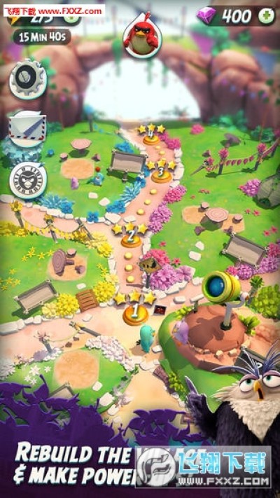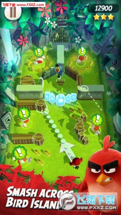 游戏中为玩家准备了三种不同的小鸟,除了常见的红鸟Red之外,还有黄色的Chuck以及黑色的Bomb,不同的小鸟特性都是不一样的,在游戏的初期只有Red可以使用,而随着游戏的进行,玩家将会解锁其他的小鸟。初次之外,游戏中还加入了道具系统,玩家使用这些道具将可以更加容易的通过关卡。游戏中每一个关卡都由三个小关卡组成,玩家在小关卡中所获得的分数总和就是玩家在该关卡中所获得的分数,根据分数的高低玩家可以获得星级评价,每获得一颗星玩家都可以获得一把钥匙,利用钥匙玩家可以获得开箱子的机会,在箱子中有金币、宝石等奖励等待玩家。
