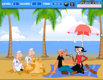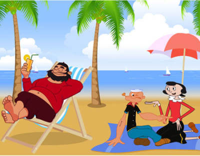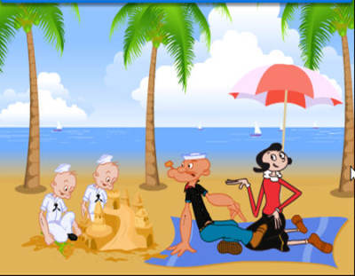 大力水手和奥利弗在沙滩渡假背着别人偷偷的热吻
