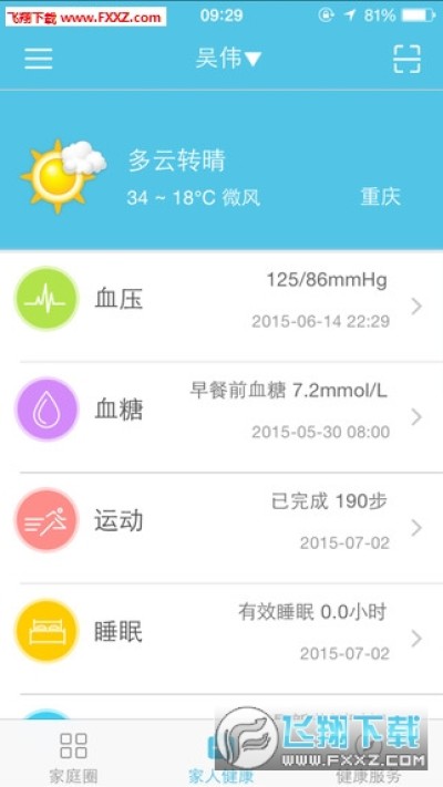 3、在家庭圈中新增服务推送功能、关爱功能和健康话术。