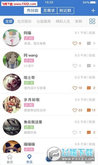 秀觅app是一个技能交换共享平台,大家如果有什么特殊的技能可以拿到这里来分享,你在服务别人的同时也可以得到别人的服务,另外还可以结交不少的朋友,感兴趣的朋友快加入进来吧!