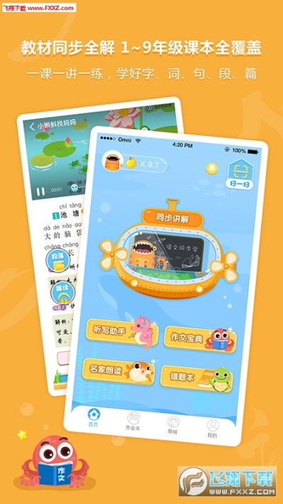 语文同步学,1~9年级课文字、词、句、段、篇全解,与课堂同步精讲;自动收集学生历史错题,反复训练巩固,知识点复习;