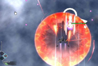 游戏的操作很简单,方向键控制移动,Z X C分别控制3种不同的武器。游戏中的3种武器各具特色,需要根据实际情况进行切换才能发挥最佳作用。Z、X控制的两种攻击都是按住攻击键会长蓄力槽,而锁定攻击是不按攻击键长蓄力槽,长满了会产生爆炸效果持续一段时间的炸裂弹。一种爆裂弹是长程激光炮,另一种为防御性的护盾,但是持续时间并不长,一般护盾是在与BOSS作战时阻挡激光炮的工具,不过,在集气时。无法攻击。