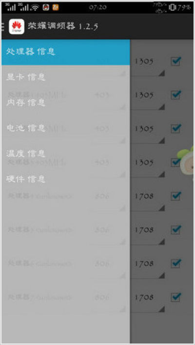 华为荣耀调频器手机版是一款帮助华为荣耀手机用户打造的手机硬件检测软件。用户可以通过华为荣耀调频器手机版检测处理器、内存、电池、温度、显卡等硬件信息,有需要的用户可以下载使用。