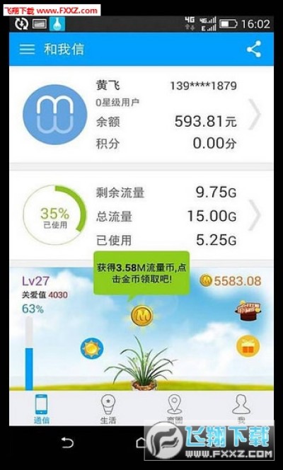 《和我信》app是一款中国移动开发的手机服务应用,用户能够通过这款软件进行个人缴费、赚流量等通信服务,各类生活服务也能一站式查缴,非常方便,打造为涵盖“通信、生活、商圈、我”4个栏目以及“1个成长体系+1个金币兑换体系”的个人居家生活产品,喜欢的朋友快来下载吧!
