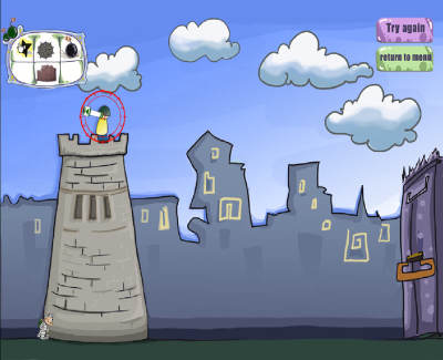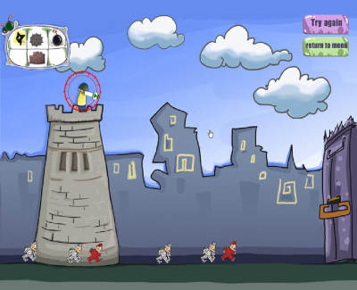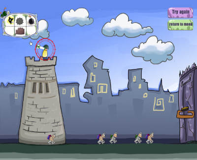 操作要领:利用鼠标控制瞄准射击,点击左键选择左上方的弹药,按住左键控制力度。