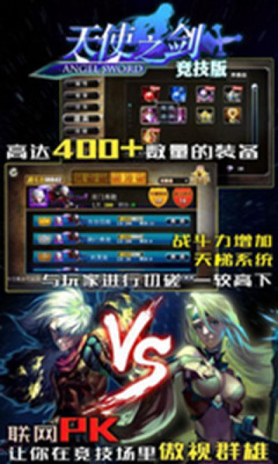 《天使之剑最新竞技破解版》游戏中性格迥异的两位勇士,各自拥有独具特色的战斗方式让你可以使用千变万化的战斗技巧展开精彩刺激的冒险之旅。厚实饱满的游戏剧情让你停不下来、近百种怪物副本让你乐此不疲、数百种武器装备让你目不暇接、一战定胜负的网络竞技场让你欲罢不能。梦想成为英雄的朋友们,不要再犹豫了,快来踏上属于你的找寻天使之剑保卫国家的冒险之旅吧!
