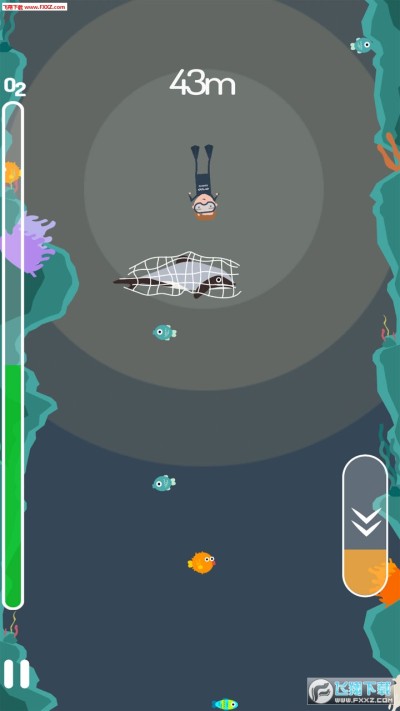 这是款简单的潜水游戏,让小编想起以前的另一款《深潜》,玩法类似。不过在这个游戏里,多了一个拯救海豚的设定,以及靠近但不要碰到小鱼去拍照得分的设定。注意左边的氧气条,要保证潜下和上浮足够。
