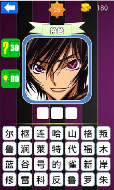 《动漫达人最新正式手游》游戏题材选自国内外各类知名动漫作品,既有80后怀旧系列的国产精品动漫,也有当今备受热捧的欧美、日本动漫,绝对考验你的动漫见识!在遇到不认识的动漫人物的时候,您可以点击答案框直接获取提示。是一个非常适合等车排队时玩耍的休闲小游戏,喜欢的玩家千万不要错过了呀!