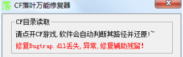 cf落叶万能修复器是一个全能的游戏修复软件,可以帮助玩家解决游戏中出现的各种问题,如闪退、蓝屏和系统文件缺失等等,让你能更加轻轻松松地游戏!