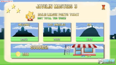 《标枪大师3 Javelin Masters 3》是一款体育竞技类游戏。游戏玩法很简单,连续点击右下角两个按钮来模拟跑步,控制小人加速,在指定的位置内投掷标枪即可。运动员的速度越快,标枪将扔得越远,当然,还得注意扔出去的标枪方向。喜欢标枪这个运动的玩家千万不可以错过这款游戏哟!