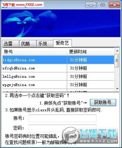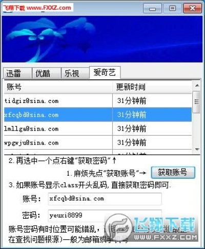 1、爆破迅雷/优酷/乐视/爱奇艺VIP账密,可以随时获取可用的VIP账号