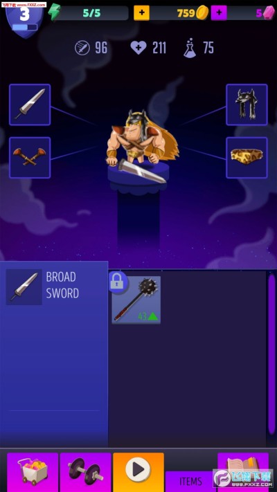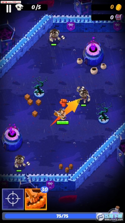 这款游戏的玩法比较特别,拖动屏幕让角色滚动去撞击敌人消灭它们。还能获得很多的武器、装备,升级自己,这就是RPG的元素了。挺不错的。