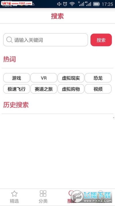 4.版本分为四个模块分别为精选,分类,搜索以及个人,其中精选为用户提供的热门搜索,其中分类为各个门类的详细介绍.
