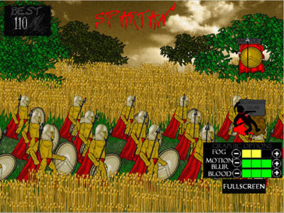以斯巴达为背景的横向卷轴游戏,游戏的特色是战斗时候的子弹时间,背景的尘埃效果也不错。是古代希腊城邦之一,斯巴达城位於中拉哥尼亚(Laconian)平原的南部,欧罗塔斯河(the Eurotas River)的西岸