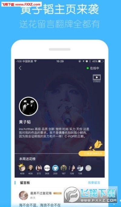 - 新增黄子韬主页,送花、留言都能够被子韬看见,更有在线状况哦!~