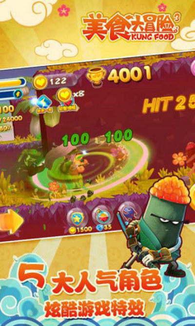 《美食大冒险之横扫天下OL最新官方正式手游》亲爱的小船员们,赶紧行动起来,一起出发吧!能量瓶、无敌护盾、秒杀飞弹,让你的探险之旅所向披靡!收集金币跟宝石,召唤更强大的探险小伙伴!熟悉的人物配音,酷炫的特效画面,这个游戏百玩不厌!