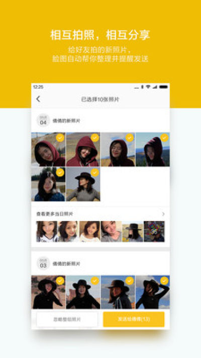 只要刷刷脸,脸图就能通过人脸识别,找到可能有你照片的好友,并将你的所有照片整理好,方便好友一键发给你。