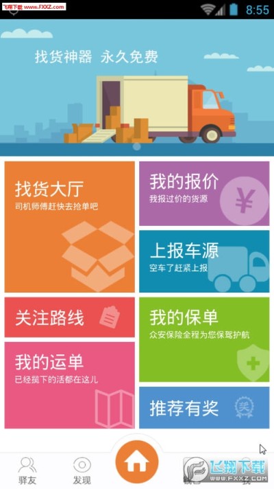 司机驿站是为货运司机和货运企业提供的一款智能配货手机应用。司机可通过上报空车和预约状态,一旦系统匹配出来会自动给司机发送通知,司机也可以查询某个城市的物流企业信息,同时已经成效的货源,可以在我的运单中查询出当前运单的相关信息等一系列便利功能。