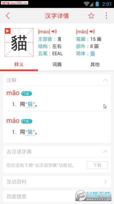 3、 笔划演示:酷炫的笔画书写演示,教你正确写字的汉语字典;