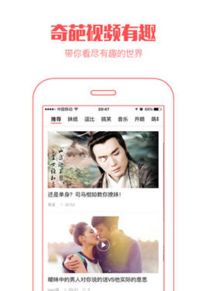阅色短视频,每秒钟都是精彩。新颖频道、个性分类,搞笑、妹纸、奇葩等等总有一个符合你的口味。