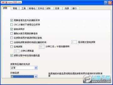 ★用静音填充丢失的偏移采样-在进行偏移校正时,如果驱动器不能正确读取 Lead-In 和 Lead-Out,该选项指定在丢失一些采样的时候,用静音填补还是丢掉采样(丢掉采样将导致 WAV 文件偏小)。选中。