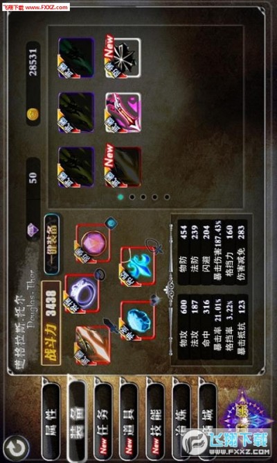 游戏的战斗按钮设计的很合理,画面左方虚拟摇杆负责控制方向,误操作较少;而右方主要是普通攻击和技能的释放。不过从战斗的体验来说本游戏还是颇有亮点的,角色的移动和攻击反应都比较灵敏,技能的释放可以形成连击这一点很不错。不过战斗的设计还是比较简单,在BOSS战中只需要在BOSS攻击之时避开然后形成有效攻击如此循环即可,虽然有一定的难度但是掌握其中的节奏后也没有太多的挑战性,也许真正的战斗应该是玩家之间的战斗。游戏中也引入了PVP系统,通过联网玩家可以与其他玩家对战,这是一个不错的设计,毕竟与人斗其乐无穷。