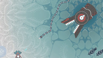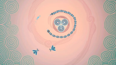 游戏一开始,玩家所扮演的蛇从一个神之古树上诞生出来,进入一个虚无幻境的世界,无论是自己的身体还是周围的物体都有着非常抽象的古老壁画风格。在这样的一个世界里,玩家要开始自己的成长之旅,也就是吃!吃!吃!