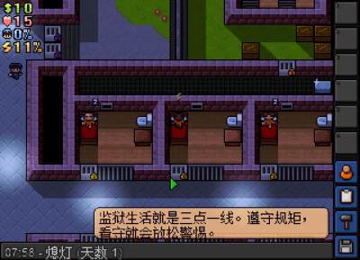 和囚犯斗殴时要挑好地点,狱警的攻击力非常高,很容易被干掉。击倒囚犯后右键点击搜刮物品。
