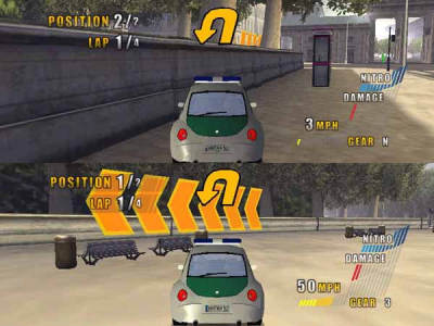 不外其实游戏重要都是赛车,游戏操作简略~特别容易上手,重要情景都是都会里的公路上~游戏有一机双屏模式~可以和你的摰友一起角逐看看谁的技术更好~~