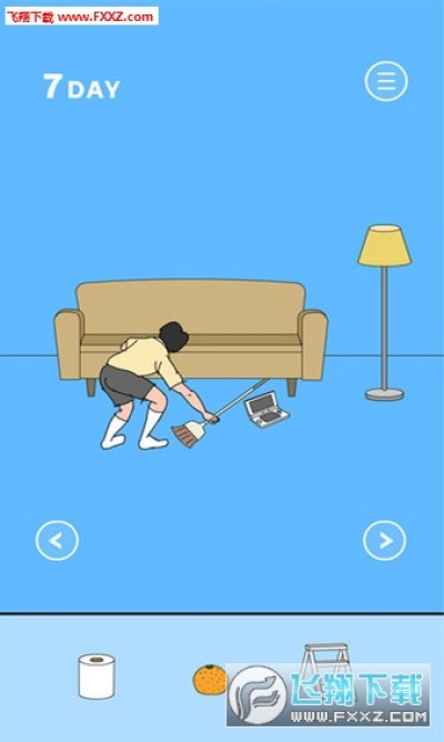 3.右房间,扫把,左房间,使用拖把掏沙发底下。