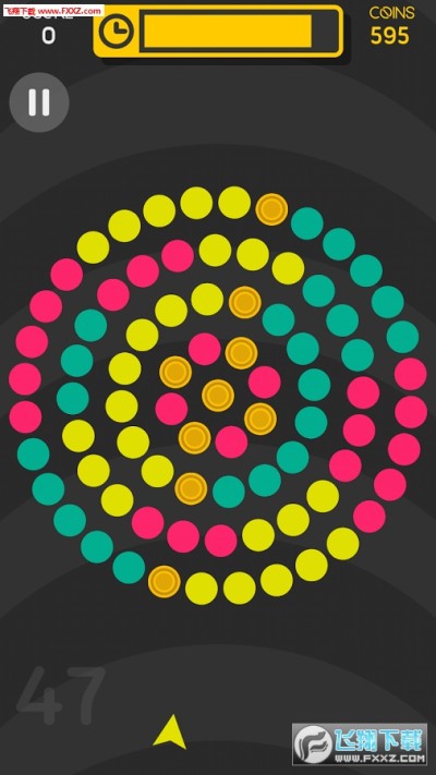 點擊屏幕和命中匹配的箭頭顏色的點,要小心,如果你錯過了點,你輸了,如果能讓你太長時間拍攝,你失去太多。收集硬幣和購買更多的箭頭設計,額外的時間來拍攝和新的背景顏色。