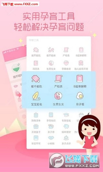 ●值得妈妈们期待的怀孕育儿工具:困扰怀孕妈妈的胎动、孕期提醒与禁忌、产检、身体变化、医院花销、宝宝发育、喂养、护理、早教等问题,这里都有详尽答案,让辣妈们度过快乐孕期、宝宝树一样的发育成长。