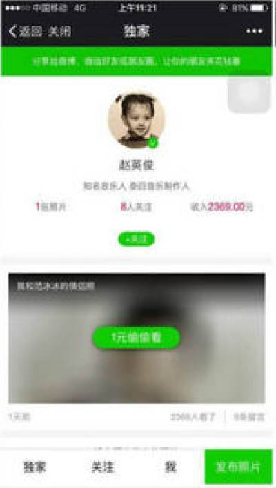 明星版分答独家app是一款功能与分答相似的独家手机软件,在这款软件上你可以花一元就可以看到明星上传的私密照,黄晓明、李晨等明星最近在玩的哦!想看他们的照片吗?赶紧来下载吧!