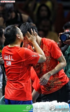 在2016年里约奥运会上,中国乒乓球队不出意料的3-1击败了对手日本队,赢了了男乒团体的金牌,在赛后刘国梁抑制不住激动地心情激吻了马龙和张继科,快来看看这激动人心的时刻吧!