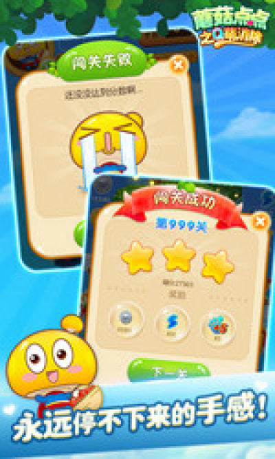 《蘑菇点点之Q萌消除官方正版手游》游戏当中我们的消除对象就是一个个非常可爱的小蘑菇,这款游戏中的画风都是可爱为主的,当然游戏当中的关卡也是有点小难度的,毕竟这些关卡都是经过精心设计的,所以玩家们在闯关的过程当中还是要花一点心思的,可不是盲目的闯关,每当我们通过一个关卡的时候还会有美妙的音乐进行播放哦,听起来是不是就很美好了呢。游戏中面对一个可爱的小蘑菇是不是不忍心下手了,可不要大意哦,要一路畅通无阻的进行消除。喜欢这游戏的朋友,赶紧来把这款游戏可爱蘑菇的消除游戏收入你的囊中,据为己有吧!