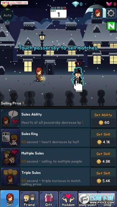 《卖火柴的小女孩游戏中文版v1.4.4》是一款像素类型的模拟经营类手机游戏,游戏以安徒生的经典童话故事改编而来,玩家在游戏中所扮演的小女孩因为寒冷和饥饿不得不要去贩卖火柴。而如何成为富甲一方的奸商,就看你的了!喜欢的玩家赶紧下载体验吧!