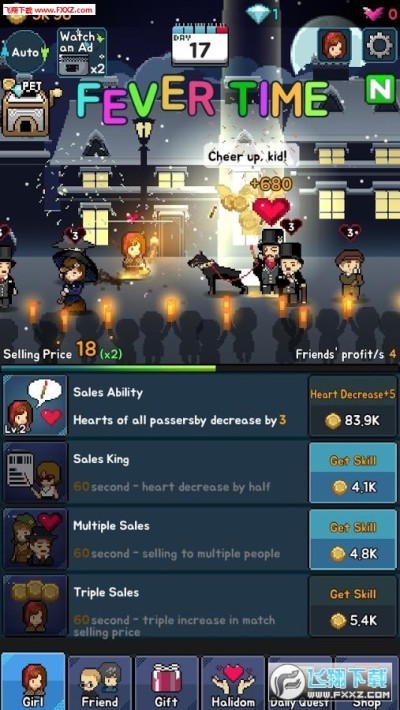 在寒冷中颤抖的卖火柴的小女孩,用自己的方式寻找幸福,卖出更多的火柴,和朋友会面,升级圣物,感化路人的心。