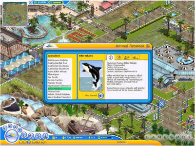 作为海洋生物乐园为主打的游戏,全游戏在建设和主题上也放了很大的卖力在海洋生物的表演和场馆之上,像鲸鱼表演,海洋生物博物馆等都可以由玩家亲手建设,玩家可以选择不同的场馆吸引观众观赏。然而,类别的选择上还不算太多,基本上也只提供了十多个表演场地和展览馆。以游戏的特色上看比重是明显不足的,也令游戏的变化减少许多,反而,弥补这个弱项,游戏一方面提供了动物的资料库,当中玩家可以详看不同海洋生物的习性和特色,和动物园大膏同出一彻,加强了游戏特色。另一方面,加上了机动游戏的配合,像过山车或是滑水道也有包括。而比例上两者相若,看不见以海洋生物乐园为主题的目的。除此以外,和其他模拟游戏相似,也有加入员工,店铺或是装饰等的设定,成为完满的模拟游戏。