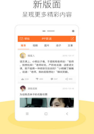 《PP笑话最新官方无广告APP》是一款专为喜欢看笑话和内涵段子的朋友而研发的笑话阅读软件,该软件中包含了许多的内涵段子,经典笑话,趣味视频和能带给人轻松愉悦的视频以及书籍,软件中你可以分享精彩有趣的笑话段子、糗事囧图给朋友们,一起传播欢声笑语。PP笑话绝对是您居家、把妹、行走江湖必备神器!喜欢看笑话和内涵段子的朋友千万不要错过了哟!