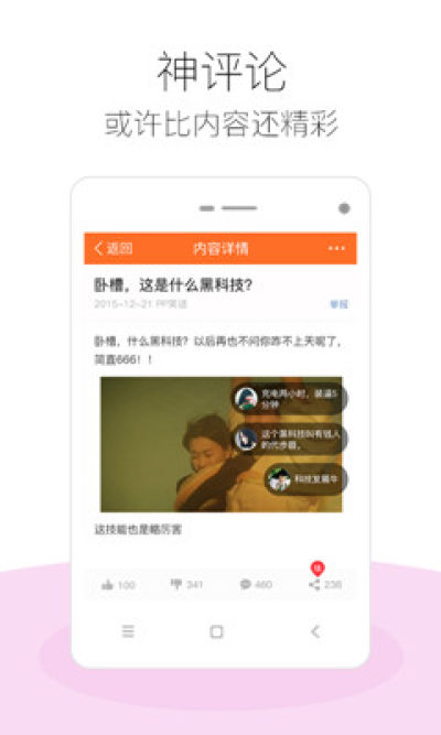 《PP笑话最新官方无广告APP》是一款汇集了海量内涵段子、经典笑话、搞笑图片、趣味视频等精彩有趣的内容的手机APP,这里有大量能令你捧腹大笑的搞笑段子视频,有了它你的每一天将会变得快乐无比,海量资源实时更新,还有更多神回复等你来点赞!